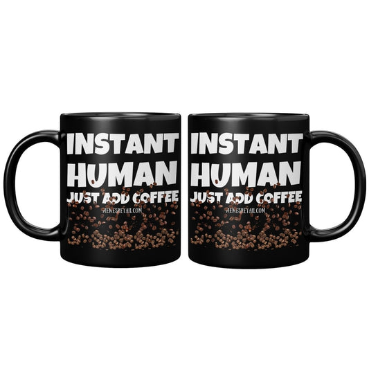 Instant Human, Just Add Coffee 11oz, 15oz Black Ceramic Mugs