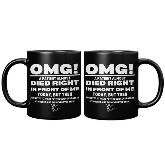 OMG! A Patient Almost Died 11OZ & 15OZ Black Mugs