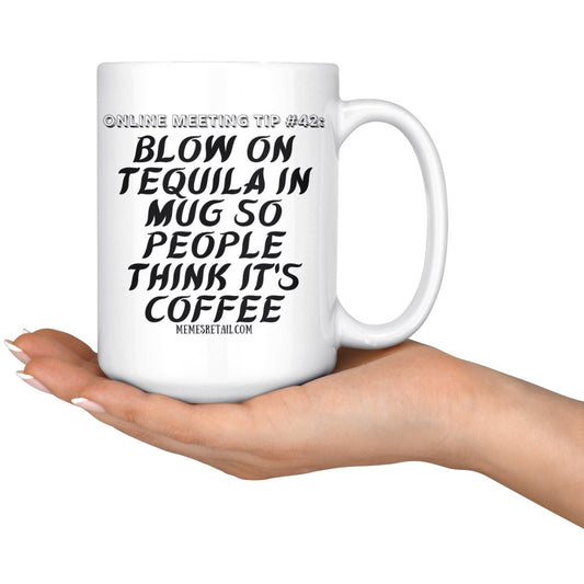 Online Meeting Tip #42 Blow On Tequila in Mug So People Think It's Coffee 15 oz Mug