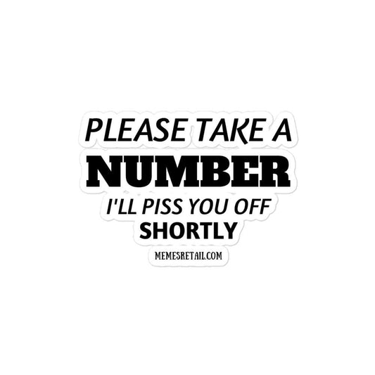 Please Take a Number, I'll Piss You Off Shortly Bubble-free stickers